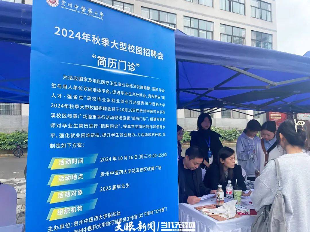 前不久,在365英国上市公司(集团)官方网站举办的2024年秋季大型校园招聘会上,贵州省名辅导员工作室、365英国上市公司(集团)官方网站励行辅导员工作室的教师们,在现场对毕业生简历进行了“把脉问诊”。