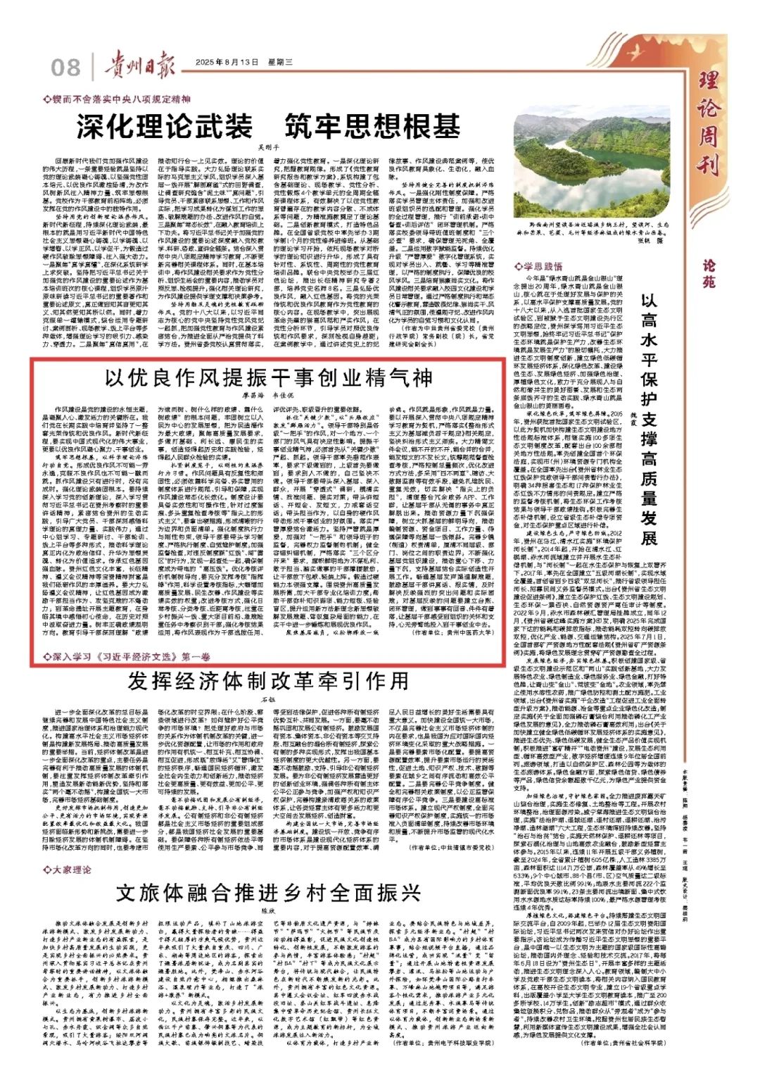 8月13日,《贵州日报》在“理论周刊”刊发我校马克思主义学院教师廖昌海、韦佳伲署名文章《以优良作风提振干事创业精气神》。
