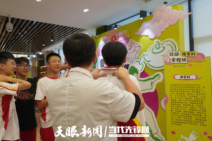 “时而轻柔地揉捏,时而有力地按压,每一个动作都精准而到位。”在推拿科的区域,医生们身着白大褂,手法娴熟地为师生们示范推拿手法,体验者微微闭上眼睛,脸上露出放松的神情,不时发出舒适的轻叹。围观的师生们有的还忍不住伸手模仿动作。