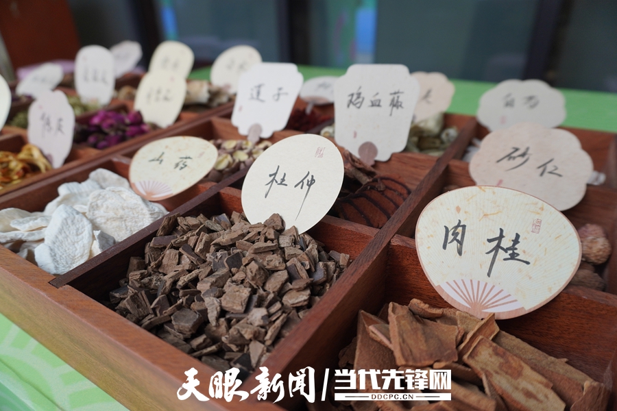 在“药你好看坊(药学部)”摊位上,中药饮片错落有致地摆放着,不少师生好奇地凑近,感受着中医药的独特魅力。