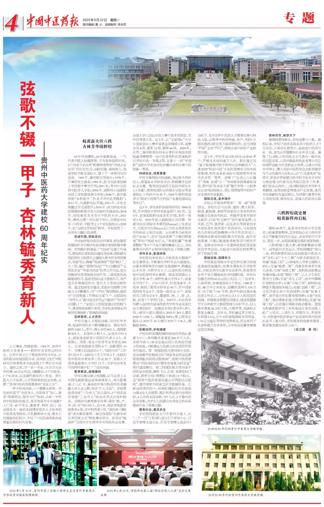 一甲子栉风沐雨,六十载薪火相传。学校始终坚守“为党育人、为国育才”初心,秉承“厚德明志,笃学力行”校训,从单一学科的中医药院校起步,逐步发展为今天涵盖7大门类、40个专业,集教学、科研、医疗、社会服务为一体的本硕博多层次人才培养的中医药高等院校,在扎根黔中大地、服务人民健康的征程中,书写了中医药高等教育高质量发展的时代答卷。