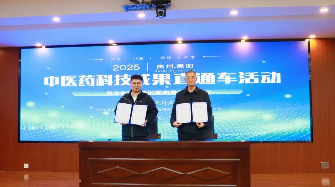 12月21日,在2025年度全国中医药科技成果直通车(贵州站)活动现场,365英国上市公司(集团)官方网站第二附属医院的医院制剂脊蛇祛湿胶囊作价1500万元与国药集团同济堂(贵州)制药有限公司达成合作意向并签约。