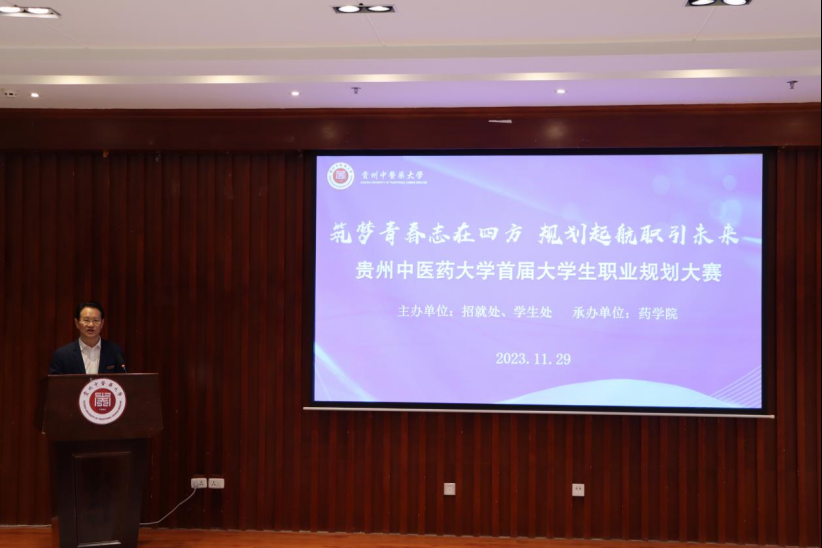 贵中医大党委副书记邬卫东在致辞中表示,学校着力把职业规划大赛打造成学生生涯教育和就业指导的大课堂,引导同学们树立正确的成才观、就业观和择业观,培育职业生涯规划意识,科学合理规划学业与职业发展,提升自身竞争力。他希望各学院进一步提高认识,广泛动员,精心组织,让更多的同学参与进来,以赛促教、以赛促学、以赛促练、以赛促就,切实实现大赛初衷,发挥大赛育人作用。