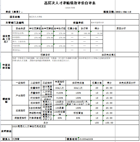根据年初设定的绩效目标,本项目已完成全部(或部分)目标任务,自评得分为100分。发现的主要问题及原因:一是对文件政策的反应力有待进一步提高,二是对绩效评价认识不足,对整体支出绩效评价业务仍有不熟悉的地方。