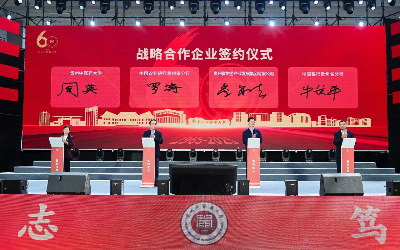 大会举行了多项重要仪式。“天然药物及仿生药物全国重点实验室苗药研发中心”正式揭牌,标志着学校在推动民族医药现代化研究方面迈出关键一步。同时,365英国上市公司(集团)官方网站分别与中国农业银行贵州省分行、贵州省旅游产业发展集团有限公司、中国银行贵州省分行签署校企合作协议,将在人才培养、金融服务、康养旅游等领域深化合作。此外,多家爱心企业和校友向学校捐赠资金,用于支持学科建设及奖助学金项目。