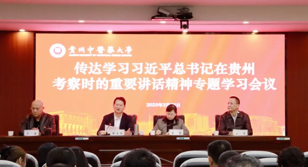 会议指出,习近平总书记再次考察贵州,充分体现了对贵州的关怀厚爱和深情牵挂。习近平总书记在贵州考察时的重要讲话,为我们抓好各项工作指明了前进方向、提供了根本遵循、注入了强大动力。学习贯彻落实习近平总书记在贵州考察时的重要讲话精神,是学校当前和今后一个时期的首要政治任务。要以习近平总书记重要讲话精神为遵循,坚持以高质量发展统揽全局,牢记嘱托、勇担使命、感恩奋进,努力推动学校各项事业高质量发展。