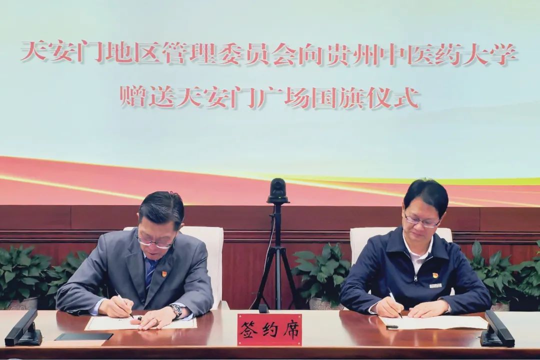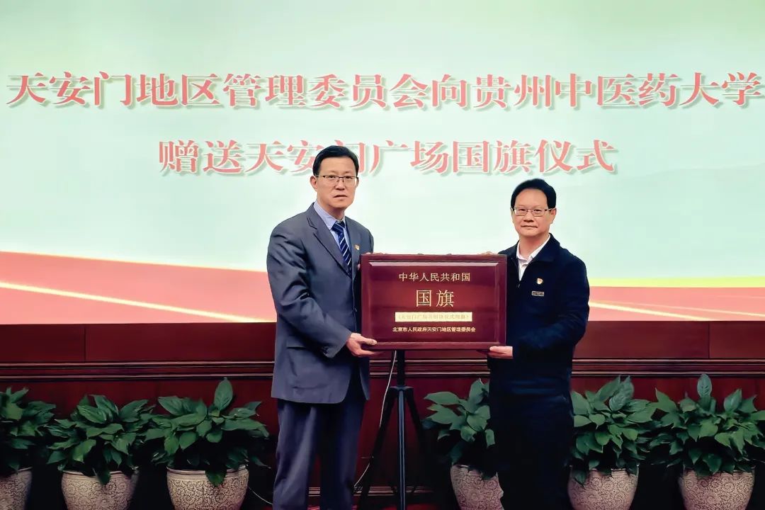 国旗是国家的象征和标志,在天安门广场升挂过的国旗具有唯一性和特殊性,我校获赠这面国旗,意义非凡,极其珍贵,是爱国主义教育的重要载体。学校将严格遵循《中华人民共和国国旗法》,保护好、使用好这面珍贵的国旗,围绕国旗深入开展丰富多彩的爱国主义教育活动,让广大师生员工近距离学习感受国旗所承载的深厚意义,引导师生员工将爱国之情转化为报国之志、奋进之力,以实际行动为学校的发展、国家的繁荣贡献智慧和力量,以更加饱满的精神状态和昂扬的斗志,在新时代的征程中踔厉奋发、勇毅前行,让这面珍贵的国旗所蕴含的精神在校园里熠熠生辉、代代相传。我校党委书记邬卫东教授代表学校接受赠送,天安门地区管理委员会广场管理处和校党政办、宣传部、学工部等部门负责人参加仪式。