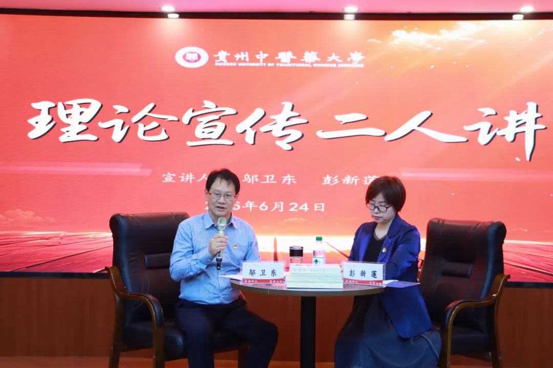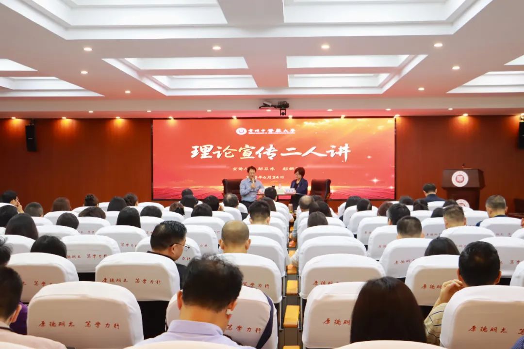 6月24日上午,学校在花溪校区行政楼一楼会议室举行深入学习贯彻习近平总书记在贵州考察时的重要讲话精神“理论宣传二人讲”。校党委书记邬卫东,马克思主义学院教授彭新莲作宣讲。