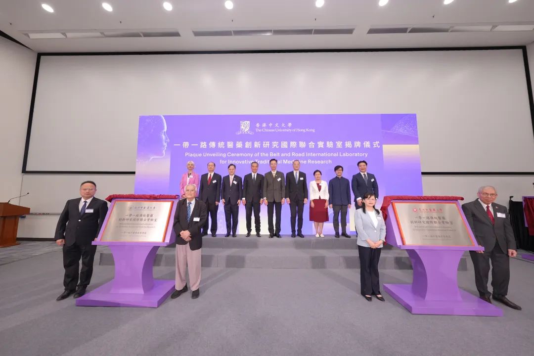 论坛期间,在中大校董会主席查逸超教授,全国政协副主席、中医药全产业链香港中心理事兼顾问及守创中药贸易平台理事梁振英,中大校长、联盟理事长卢煜明教授等重要嘉宾的见证下,周英与香港中文大学副校长陈伟仪共同为我校“一带一路传统医药创新研究国际联合实验室”揭牌。