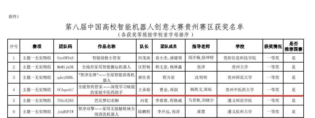日前,第八届中国高校智能机器人创意大赛贵州赛区选拔赛结果正式揭晓,我校信息工程学院先驱青年队凭借作品“全能智药管家——深度学习赋能的家庭中医药助手”脱颖而出,荣获省级一等奖,并入围全国总决赛。