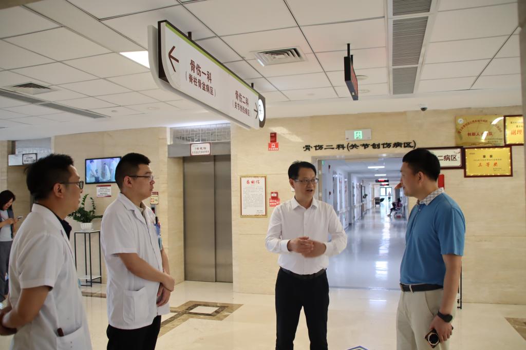 邬卫东一行实地考察了各基地技能操作室、图书室、自习室、学生实习科室、康复中心等教学场所,并到食堂、宿舍看望学生,对实习条件保障、学生管理服务、住宿生活条件等进行全面细致的了解。在与实习生座谈交流中,同学们分享了在临床实践中的成长感悟、学习体会、专业收获,并提出了改进意见建议。邬卫东认真倾听了每位同学的发言,鼓励大家要明确学习目的,端正学习态度,珍惜实践机会,积极主动思考,大胆动手实践,在老师的指导下,在临床历练中夯实专业根基,锤炼专业本领、精进专业技能。