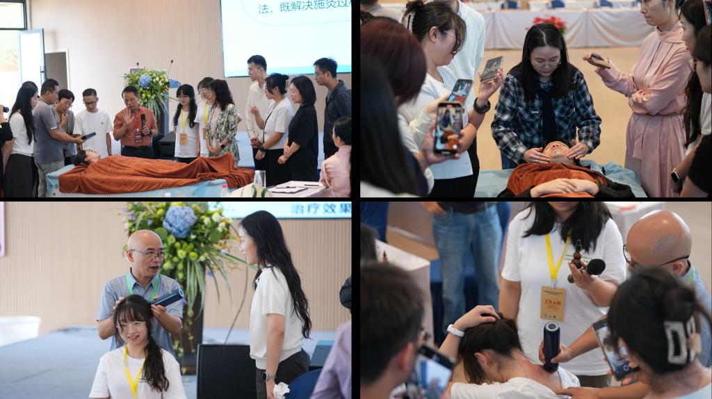 另外16位专家围绕“经皮给药系统前沿技术、经皮治疗现代化、院内制剂与新药研发”等方向作专题报告,深入交流最新研究成果与实践经验。我校第一附属医院主任医师夏景富现场展示苗医刮灸术。第二附属医院皮肤科主任杨凡作题为“黄褐斑治疗现状和挑战”的报告,主管护师张迪和护师高如芳分别开展“皮肤科砭铜刮痧面部应用”“从美容养护到玫瑰痤疮的皮肤修复实践”特色技术培训。