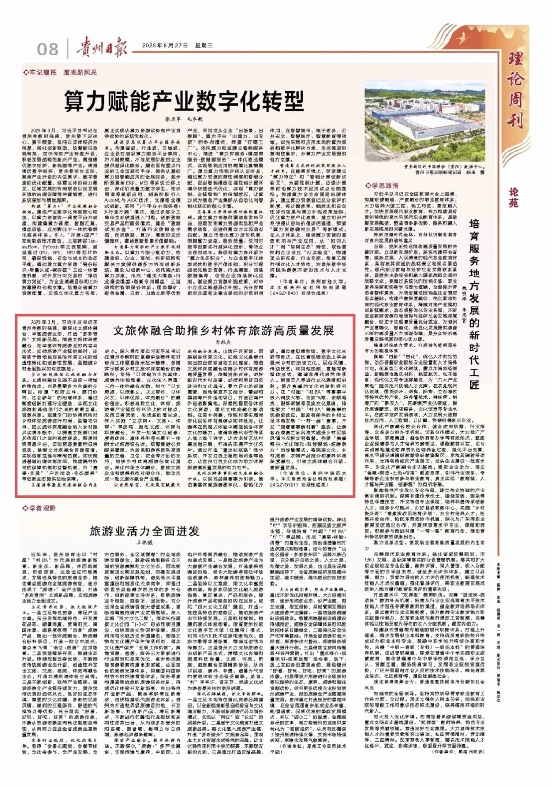 8月27日,《贵州日报》在“理论周刊”刊发我校体育健康学院副教授孙柱兵老师署名文章《文旅体融合助推乡村体育旅游高质量发展》。