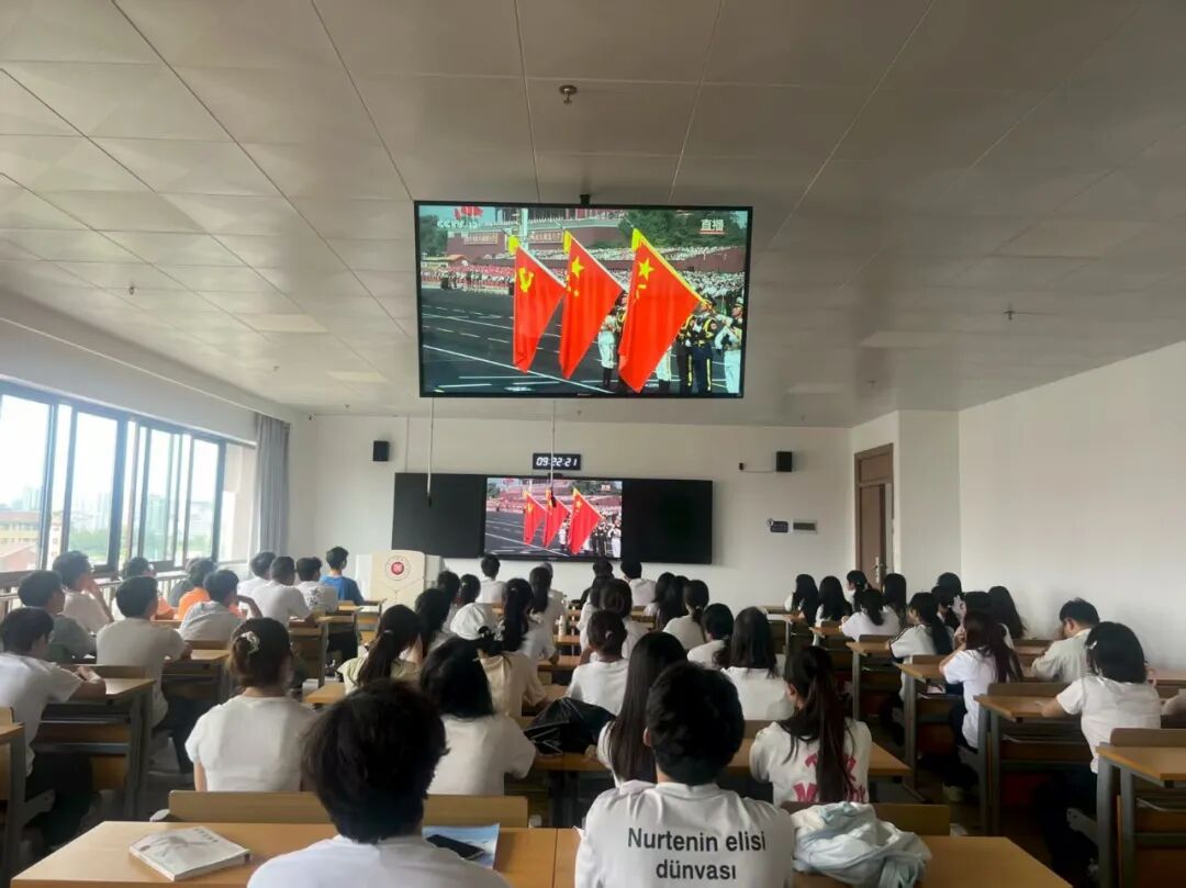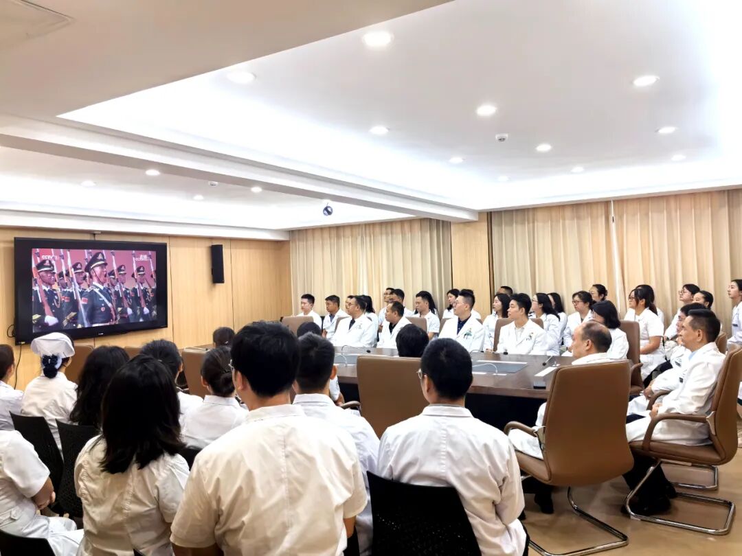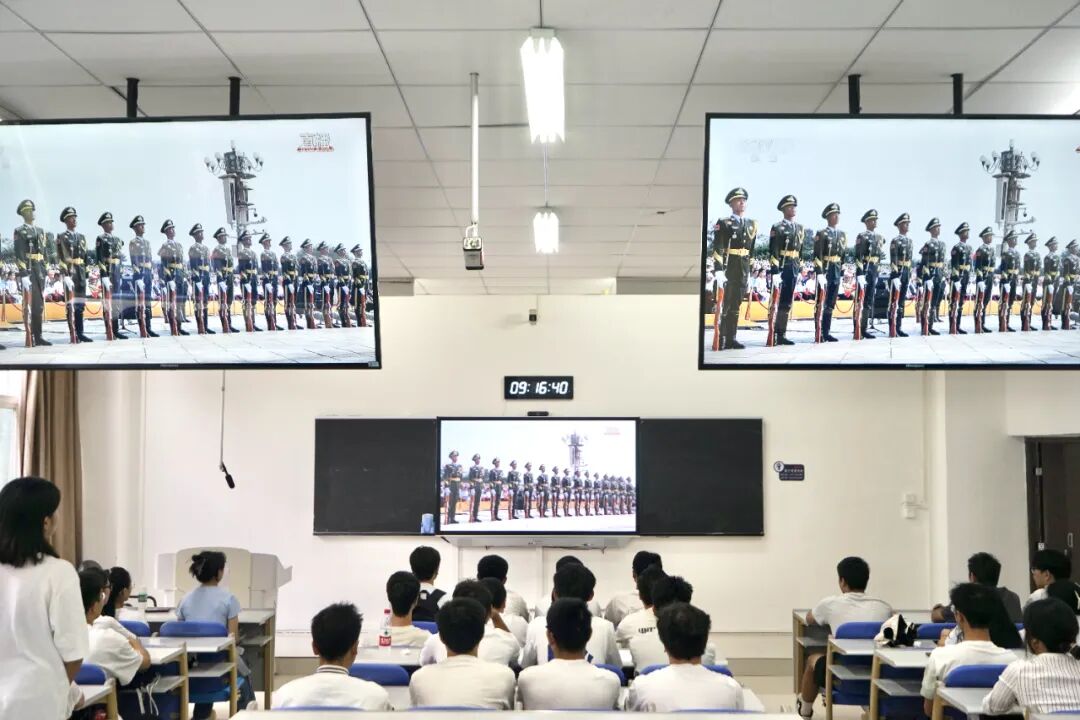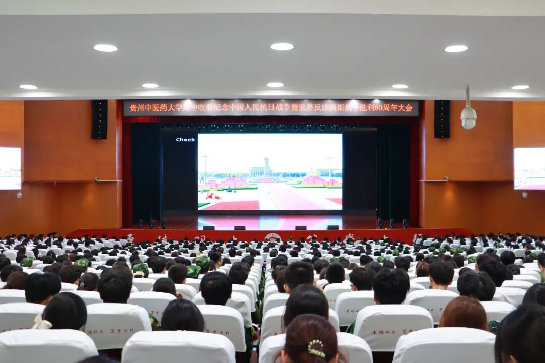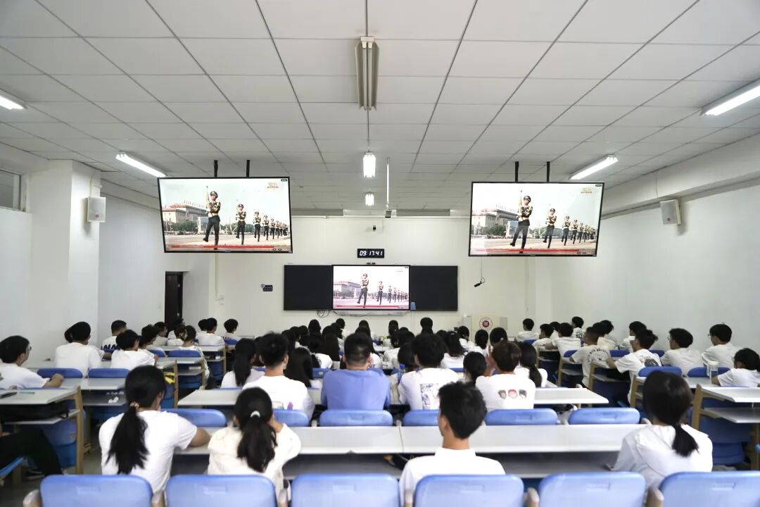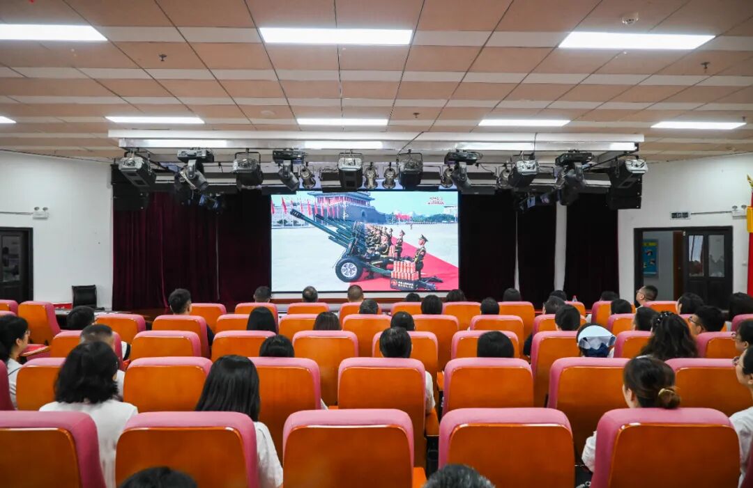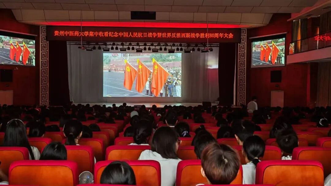 我校组织广大教职医护员工生分别在花溪、甲秀两个校区礼堂、会议室、办公室以及教室等处,通过电视、网络直播等多种形式,同步集中收看大会盛况,回顾那段烽火连天的峥嵘岁月,缅怀革命先烈的丰功伟绩,汲取勇毅前行的力量,同上一堂深刻而生动的爱国主义教育和国防教育课。