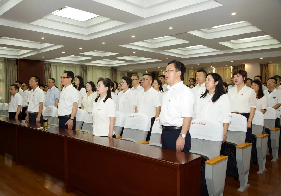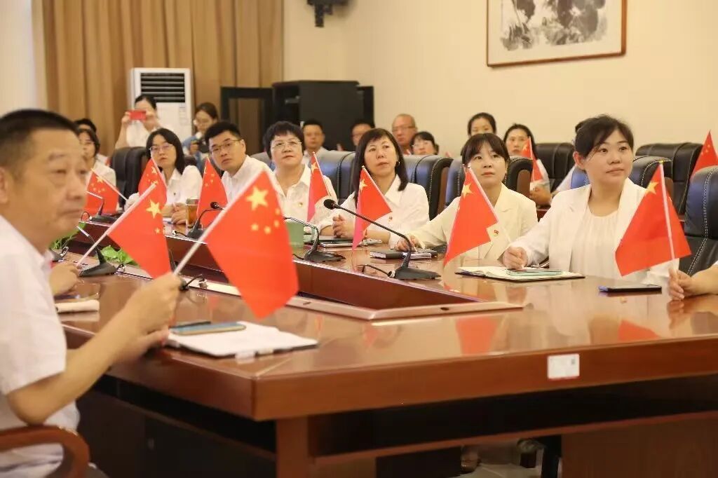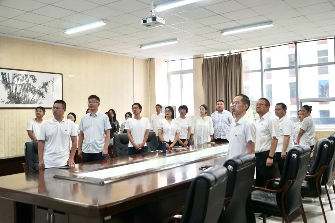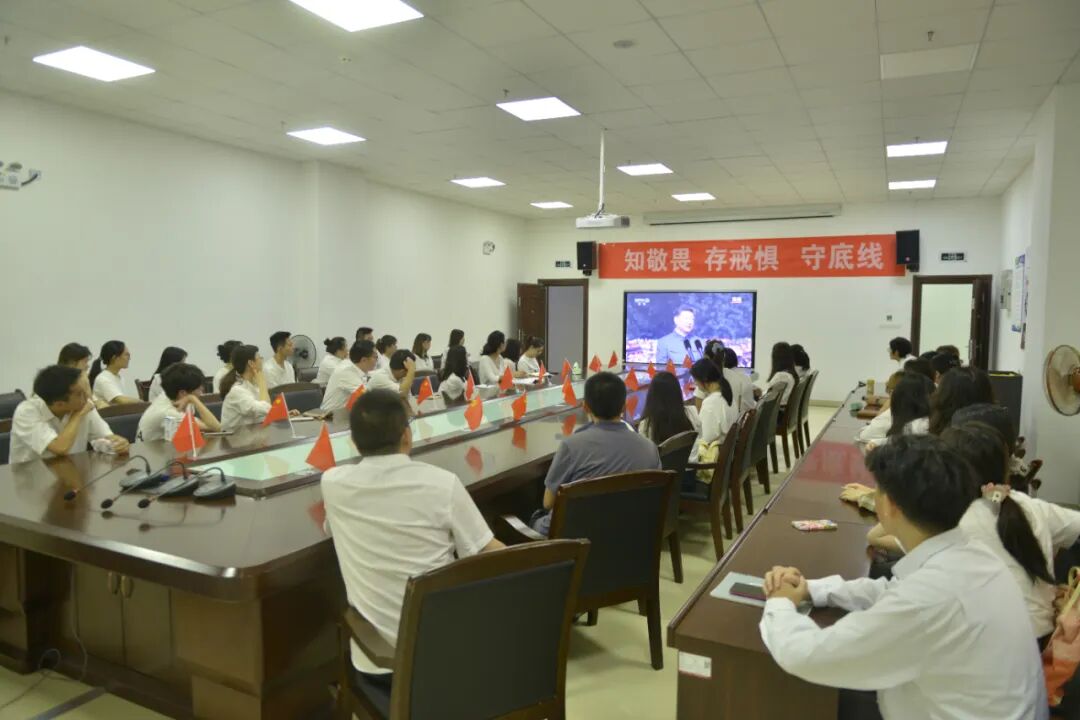 校领导及党员干部在花溪校区行政楼会议室集中收看