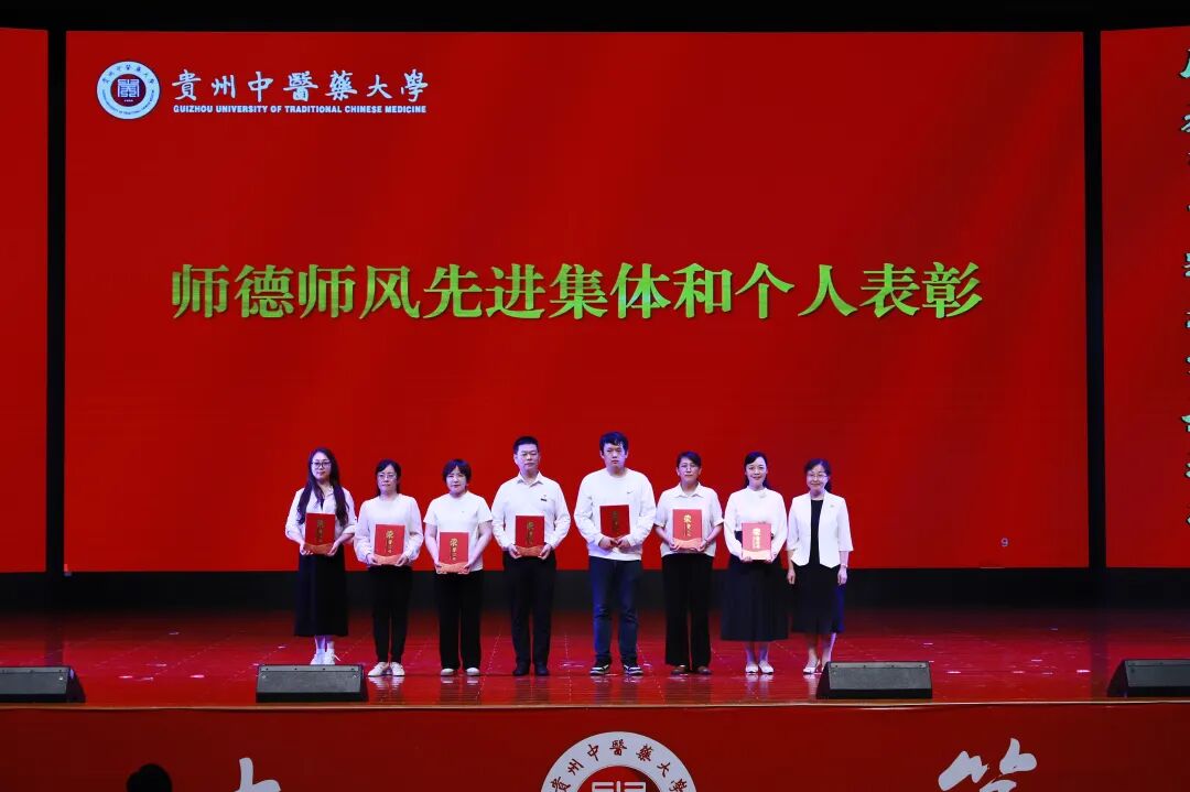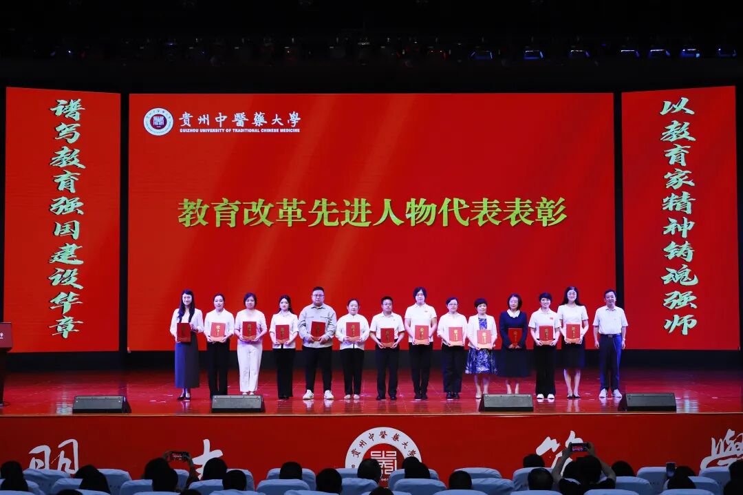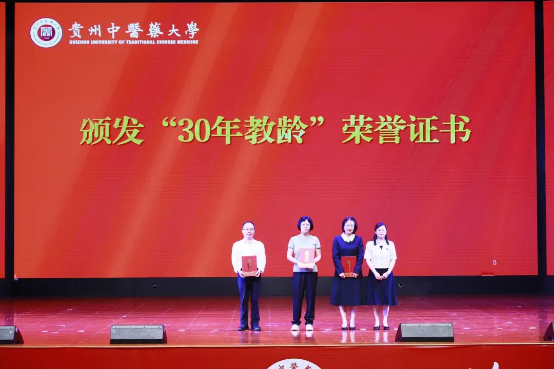 会上,“30年教龄”教师,师德师风先进集体和个人,2024年贵州省普通本科高校“金师”、2024年贵州省高等教育教学成果奖获得者等教育教学改革先进人物代表,2024年贵州优秀共青团干部以及2025年校级“我最喜爱的老师”等学生培养先进典型代表受到表彰,校领导为其颁发荣誉证书。青年教师向“30年教龄”教师刘维民、张铭、周静献花。