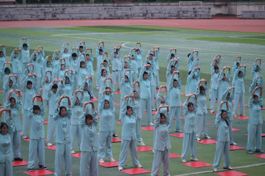 开幕式上,进行了啦啦操和武术表演,以及百人八段锦功法展示。