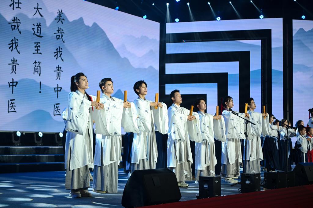 国医大师刘尚义、何成瑶,校友代表、兄弟院校代表,校领导及师生代表一起观看演出。