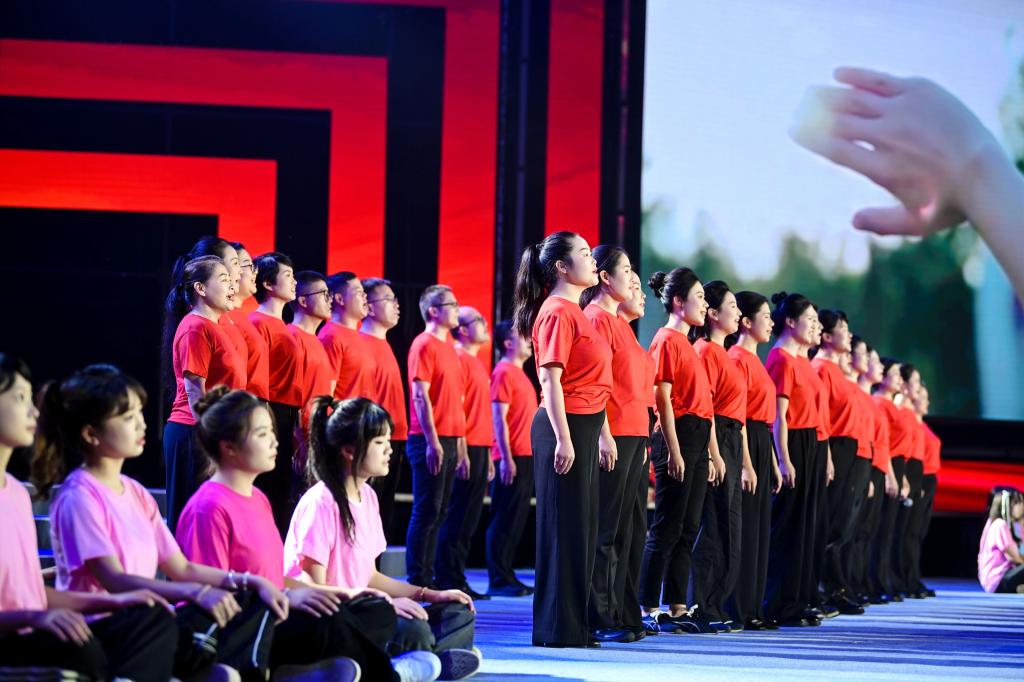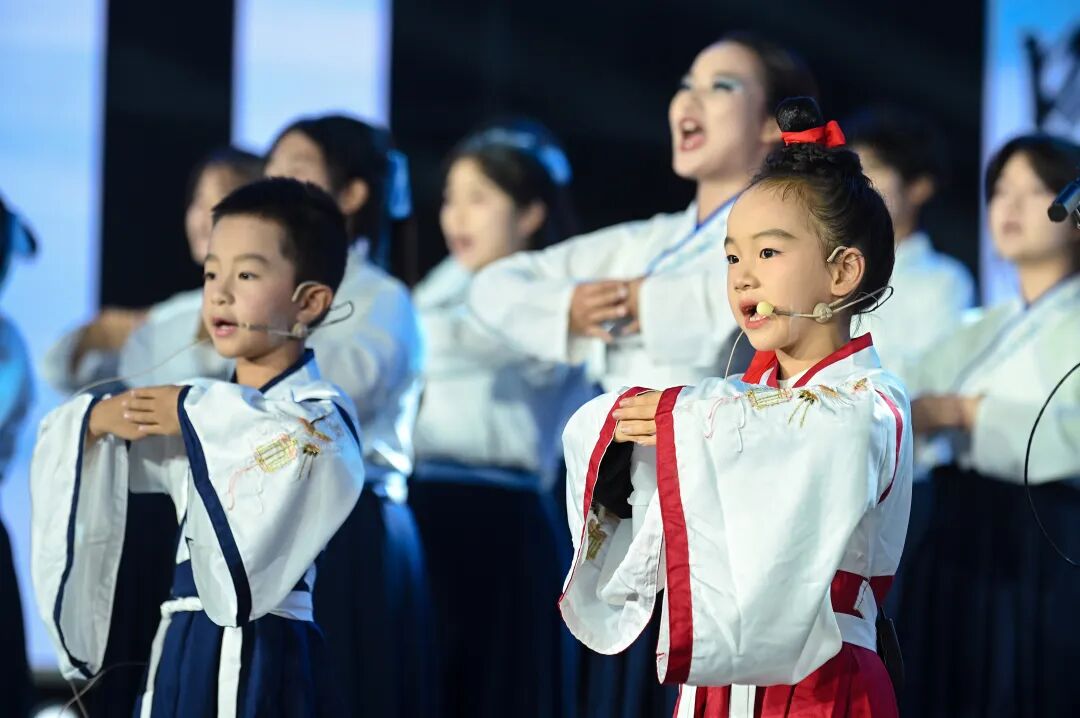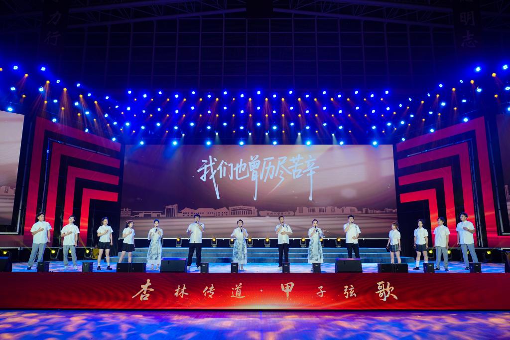 活动在歌舞《一起向未来》中拉开序幕。随后,在近两个小时的时间里,这场穿越甲子的节目,聚焦时代发展变迁和学校60年办学光辉历程中的重大事件,通过史诗朗诵、融合舞蹈、校园短剧、校友联唱、三代合唱等多种形式,集理论学习、艺术鉴赏、沉浸式体验于一体,为师生带来一场思想与艺术的盛宴,串联起一堂有温度、有深度、接地气,“声”入人心的“舞台上的思政课”。