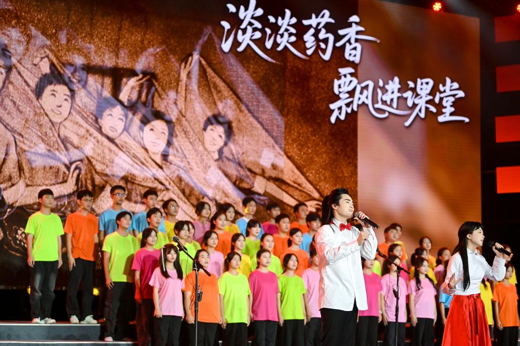 思政课尾声,所有参演人员和观众齐唱校歌《一生药香》,在熟悉的旋律中,大家饱含深情,唱出新时代贵中医人的心声。活动在大合唱《我爱你中国》中落下帷幕。