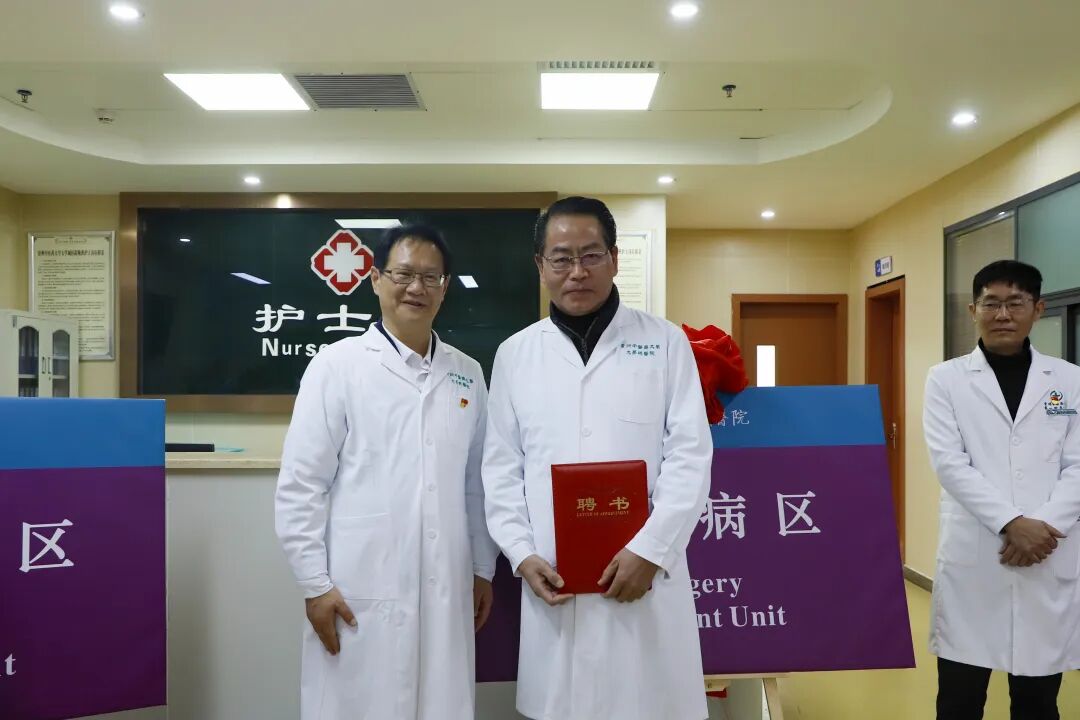 邬卫东与大学城医院负责人、科室专家共同为开科科室揭牌,并为外科名誉主任李卿明颁发聘书,对大学城医院内科、外科与妇科开科表示祝贺。希望各科室利用自身技术和管理优势,在学科发展、人才梯队建设等方面,进一步提高整体医疗水平,科学、规范诊疗,朝着更高质量学科建设水平发展。