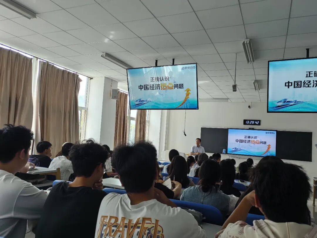 刘震为药学院食品质量与安全2025班授课,从基础稳、优势多、韧性强、潜能大等维度解读中国经济发展格局,同时结合目前中医药发展实际,重点分析了经济热点与行业发展的契合点。