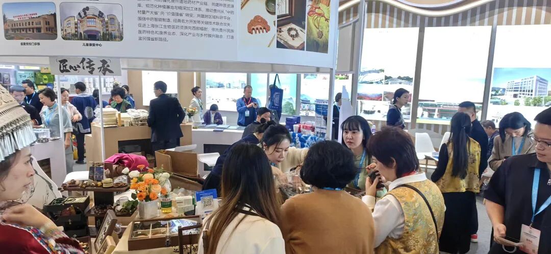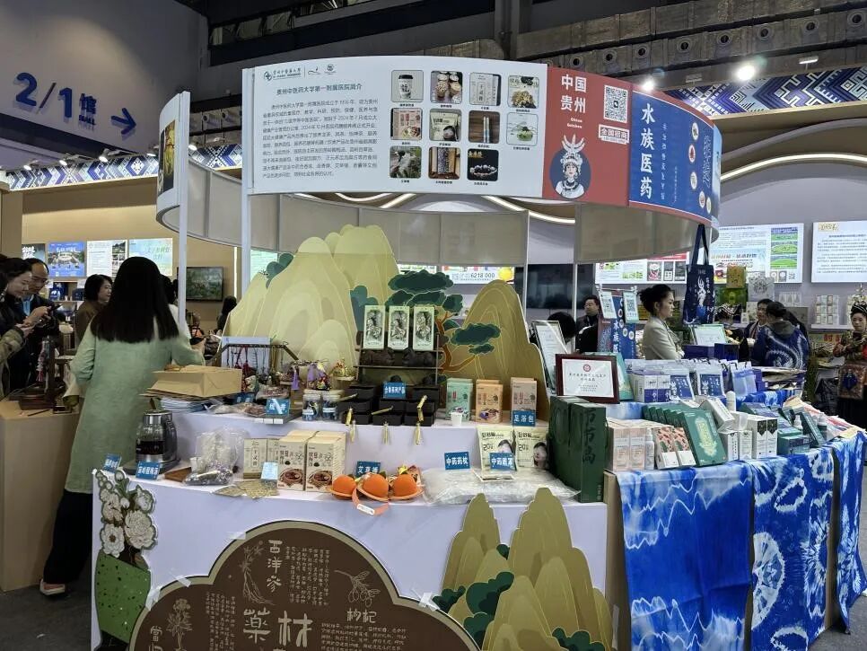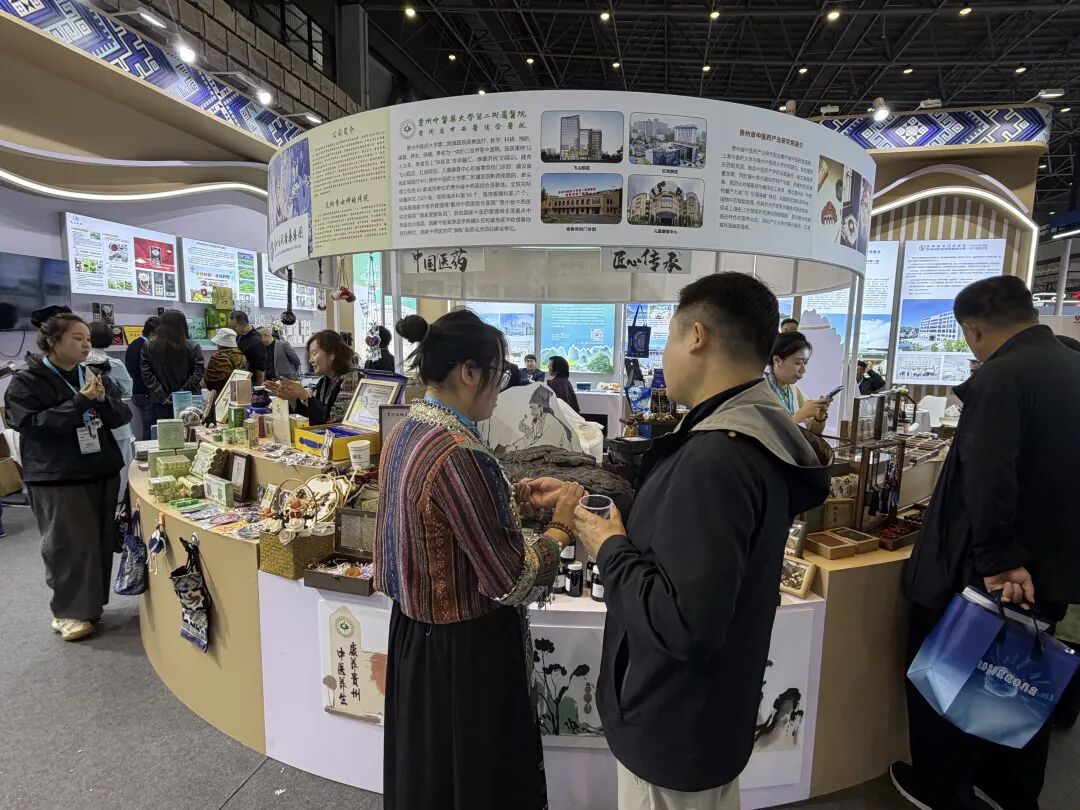 学校第一附属医院、第二附属医院同步参展。一附院展出颐养咖啡、苗岭酸梅汤、干灵膏及多类中医药文创产品20余类,展现“大健康产品研发—转化—应用”一体化优势;二附院集中展示融合中医药与民族工艺的香囊、中药香皂、养生用品及院内制剂、茶补补养生奶茶等15个品类,体现中医药与贵州特色文化的深度融合及中医药“药食同源”的健康智慧。