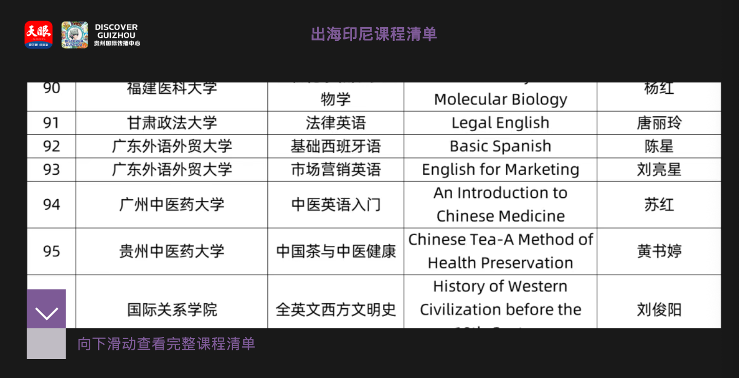 Led by Dr. Huang Shuting and Professor Cao Feng from the School of Health Preservation at Guizhou University of Traditional Chinese Medicine, the English online course Chinese Tea – a Method of Health Preservation has entered overseas online classrooms, including those in Indonesia, through China's MOOC "going global" initiative. The course exemplifies how Guizhou is using digital education to bring traditional Chinese medicine and tea culture to international audiences.
