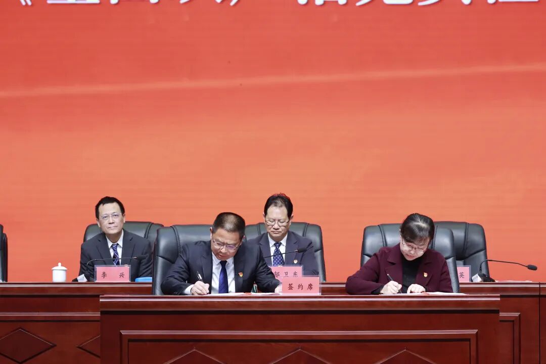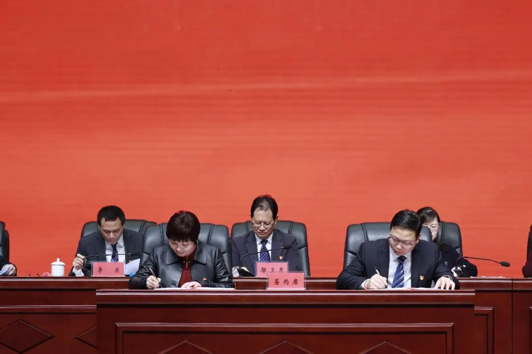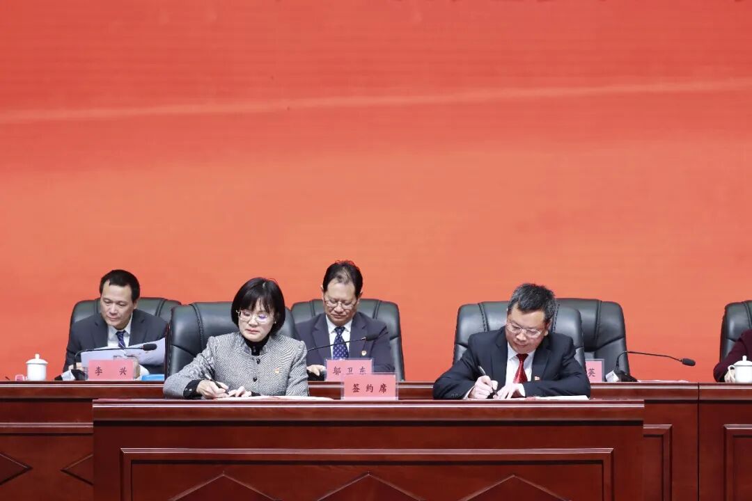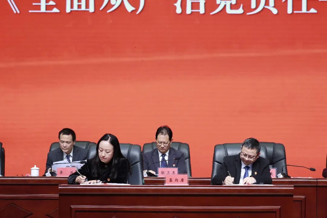 会上,邬卫东与校党委班子成员签订《全面从严治党责任书》,与人文与管理学院签订《党建考核目标责任书》;周英与药学院、审计处签订《2026年高质量发展考核目标责任书》;校党委班子成员分别与组织部、宣传部、护理学院、骨伤学院、针灸推拿学院签订《全面从严治党责任书》。