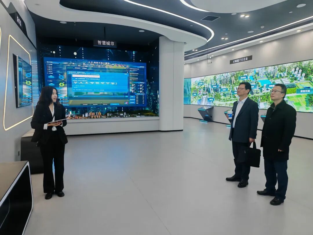 邬卫东一行参观了企业技术展厅,实地了解企业发展成果与技术应用情况。随后,双方围绕校企合作、人才培养、就业对接等方面开展座谈交流。
