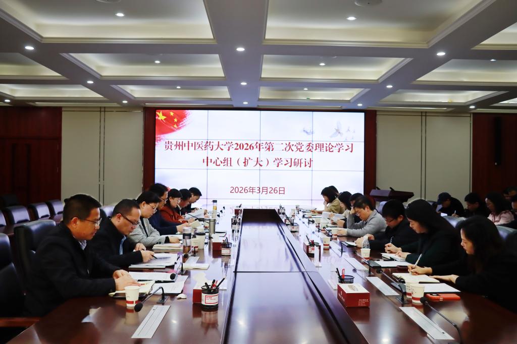 根据校党委统一安排,3月26日下午,学校在花溪校区学术交流中心会议室召开2026年第二次党委理论学习中心组(扩大)学习研讨会,围绕“全面深入学习习近平总书记关于树立和践行正确政绩观的重要论述,认真落实全国两会精神,在牢固树立和践行正确政绩观上见行见效,切实把学习成果转化为推动学校高质量发展的强大动力”主题开展集体学习研讨。校党委书记邬卫东主持会议并讲话。