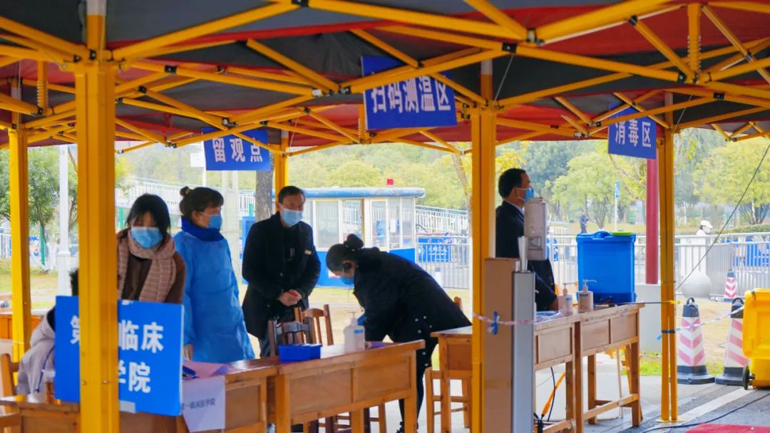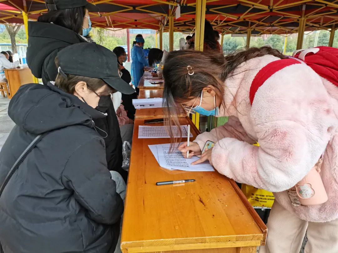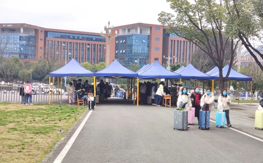 返校学生间隔排队,按照相关疫情防控要求,凭借核酸检测报告,查验个人健康码、行程卡等,测温后入校。