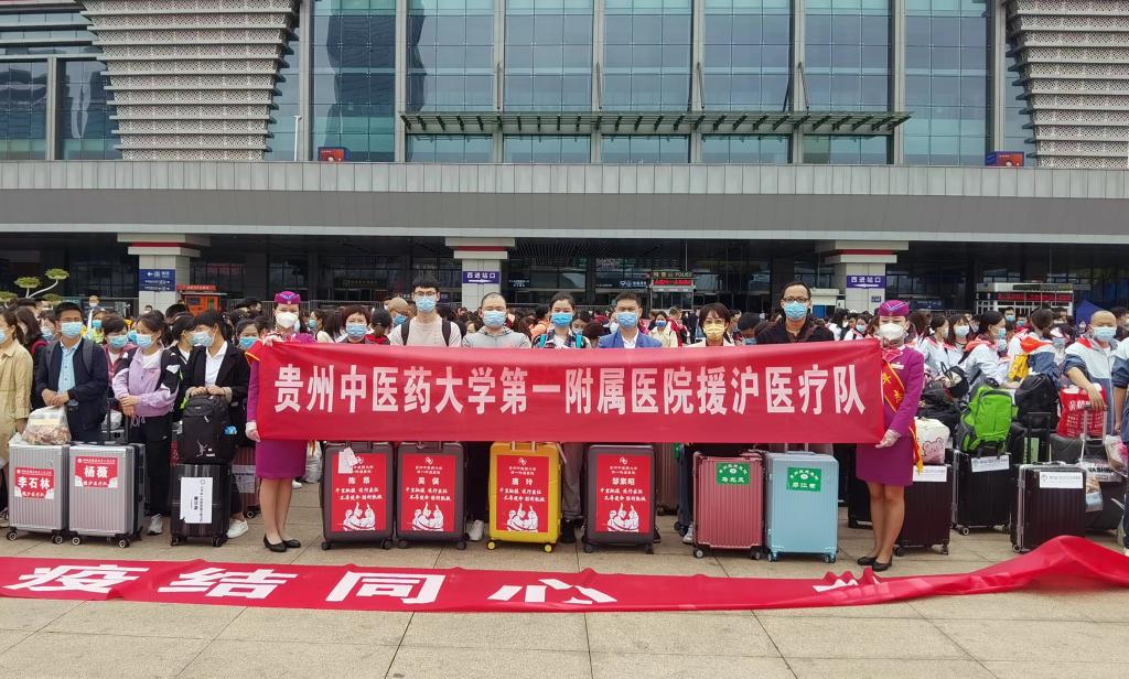 为全力支援上海市开展新冠肺炎医疗救治工作,根据国家和省有关部门统一安排部署,两所附属医院遴选出22名医护人员作为贵州省援沪医疗五队队员,与来自全省、市、县其他医院的1000余名医务人员一起奔赴上海。