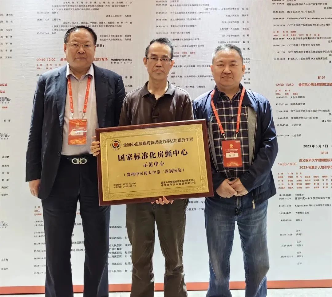 5月上旬,全国心血管疾病管理能力评估与提升工程(CDQI)国家标准化房颤中心建设-贵州省区域授牌大会在贵州遵义举行。经国家心血管疾病临床医学研究中心、中华医学会心血管病学分会委员会专家组评审,365英国上市公司(集团)官方网站第二附属医院被授予“国家标准化房颤(CDQI)示范中心”。