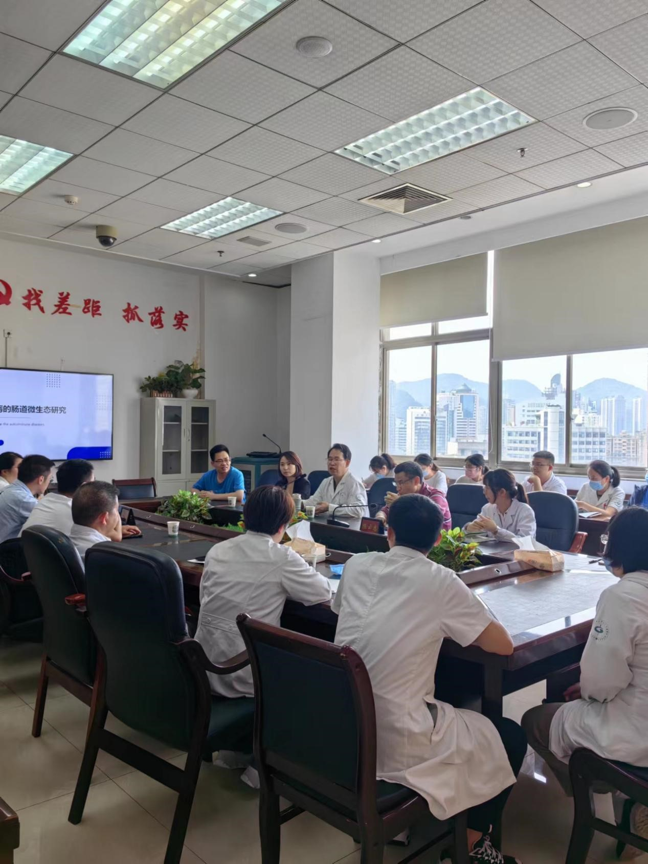 农工党省直中医总支副主委黄聪博士通过介绍经验方调控肠道菌群发挥治疗作用的临床研究,对如何发挥利用好附院临床资源进行多学科交叉科研思路与研究设计作交流研讨。