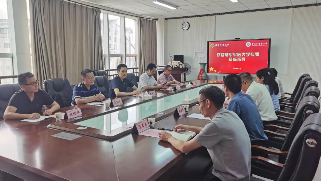7月12日,陆军军医大学军事预防医学院院长王军平、军队环境卫生学教研室主任周紫垣、军队流行病学教研室主任马翔宇一行来校开展国家高水平公共卫生学院合作共建交流座谈。校党委副书记、校长刘兴德出席座谈会并致辞。