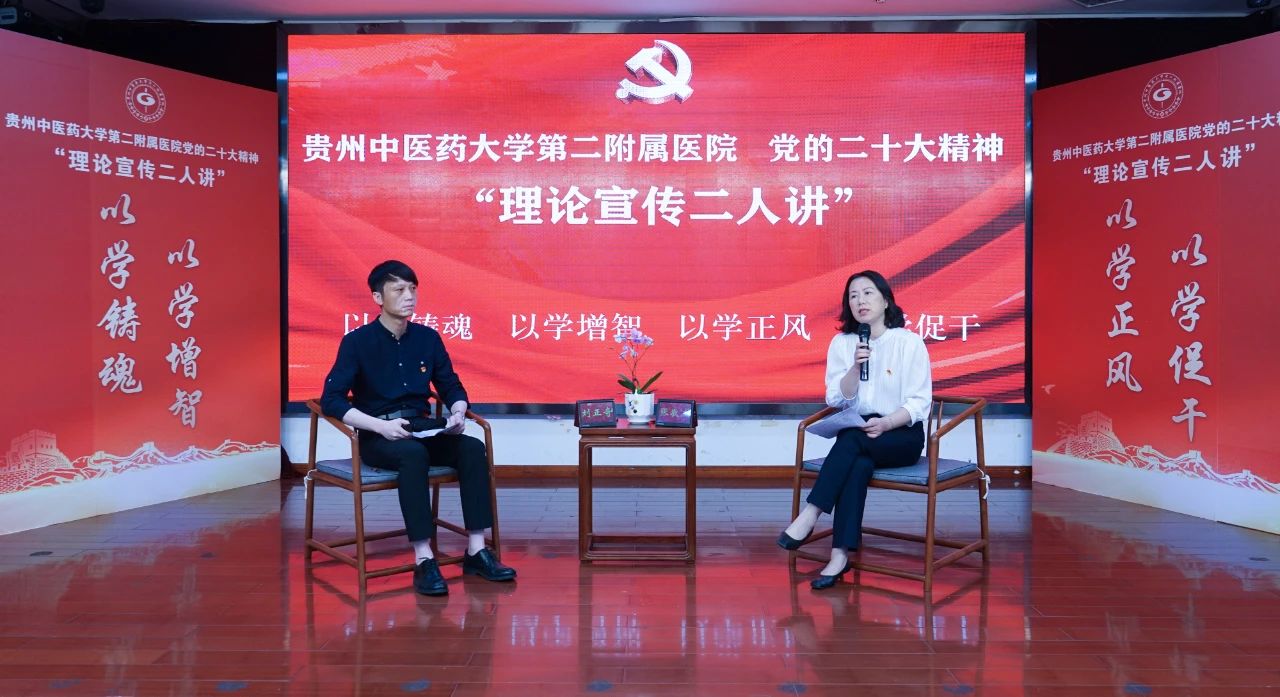 二附院党委书记张敬杰,副院长、国医大师传承弟子刘正奇从党的二十大报告中的关键词“促进中医药传承创新发展”出发,以讲理论与讲实践相结合、讲道理与讲故事相结合展开宣讲。