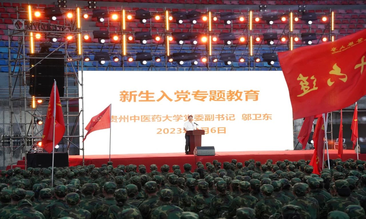 9月6日晚,学校在花溪校区北体育馆开展入党专题教育,深入学习宣传贯彻党的二十大精神,教育引导新同学从党的历史中汲取智慧和阔步新征程的磅礴力量。