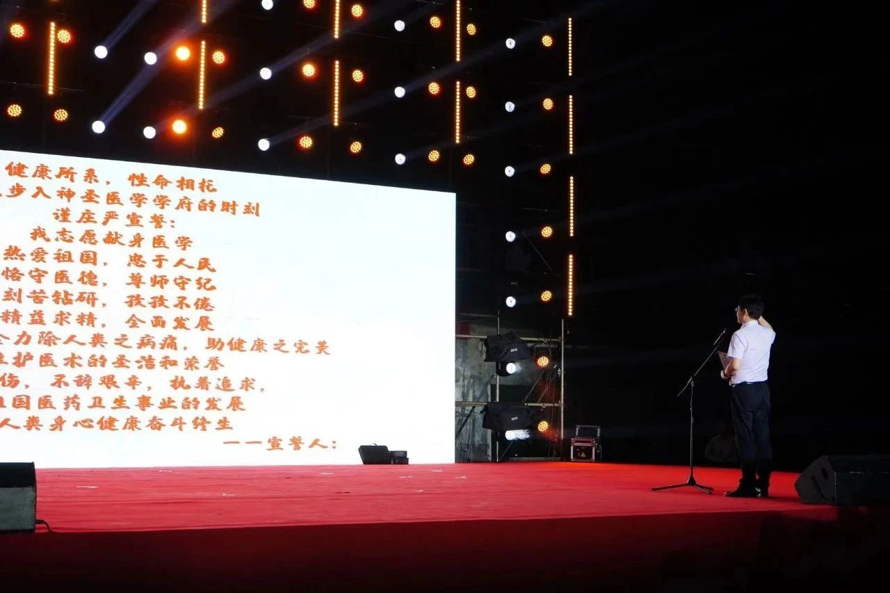 邬卫东带领全体新生进行医学生宣誓。庄严而神圣的誓词,铮铮有力的宣誓声,是每一名医学生踏上医学道路的“第一课”,是广大医学生坚定“人民至上、生命至上”信念、践行“敬佑生命、救死扶伤、甘于奉献、大爱无疆”医者精神的庄重承诺,更是对中医学子增强学习医学的责任感、使命感、荣誉感,坚定医者救死扶伤重任的激励。