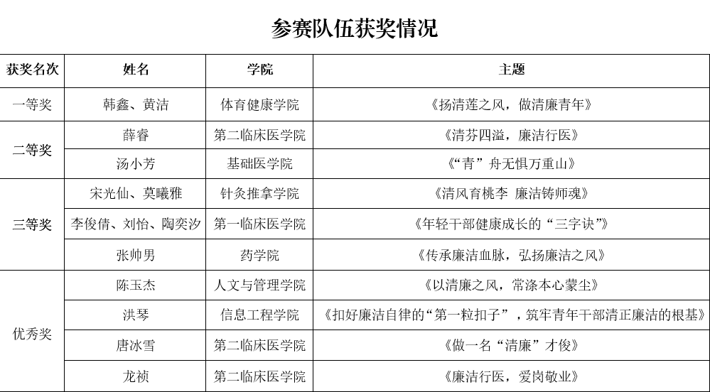 校纪委书记李兴,校党委委员、宣传部部长、统战部部长刘维琴,校党校常务副校长、党委组织部副部长黄伟,校纪委副书记姚梅,校团委书记梁明珠、副书记杨丹作为评委和嘉宾出席活动。