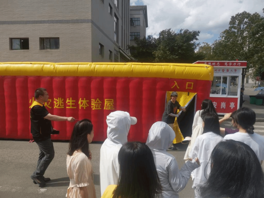 活动分为消防器材使用方法讲解和实战体验火灾模拟体验区两部分。培训专员从灭火器灭火、安全绳法使用、应急逃生疏散、消防安全“四个能力”方面进行了系统培训。