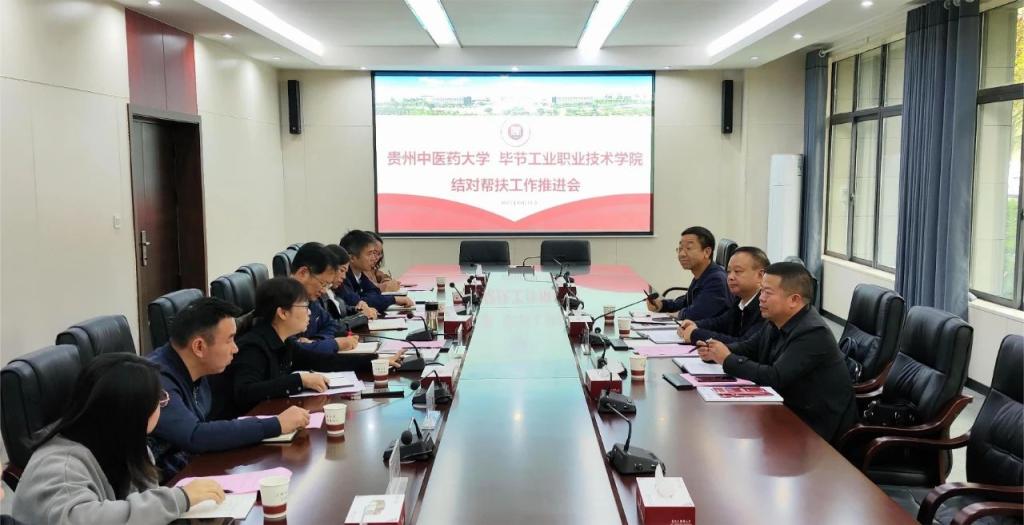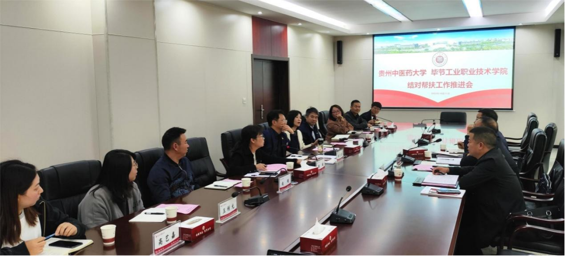 10月11日,毕节工业职业技术学院党委副书记付善华与党委委员、宣传统战部部长余斌,综合目标考核办主任宋铭一行来校开展结对帮扶工作推进会。校党委副书记邬卫东,校党委委员、宣传部部长、统战部部长刘维琴出席。