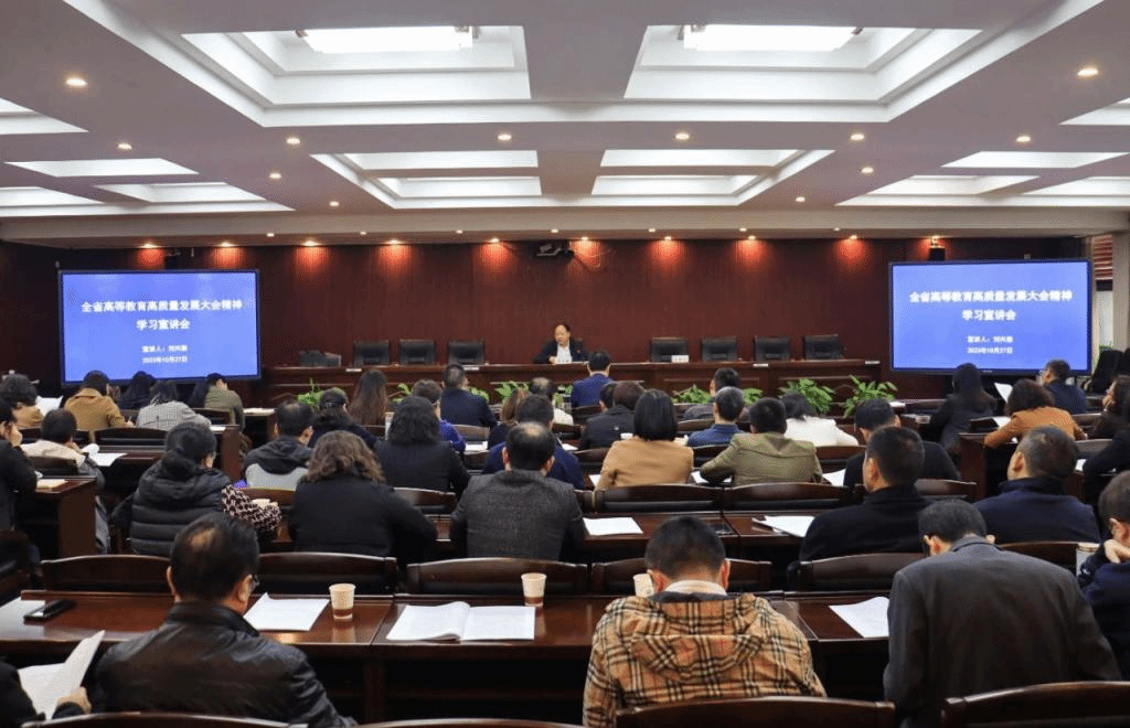为深入学习贯彻落实全省高等教育高质量发展大会精神,全面贯彻党的教育方针,坚持把立德树人作为根本任务,奋力推进学校各项事业高质量发展,10月27日,学校在花溪校区举行全省高等教育高质量发展大会精神学习宣讲会。校党委副书记、校长刘兴德作宣讲报告,校党委副书记邬卫东主持宣讲报告会。