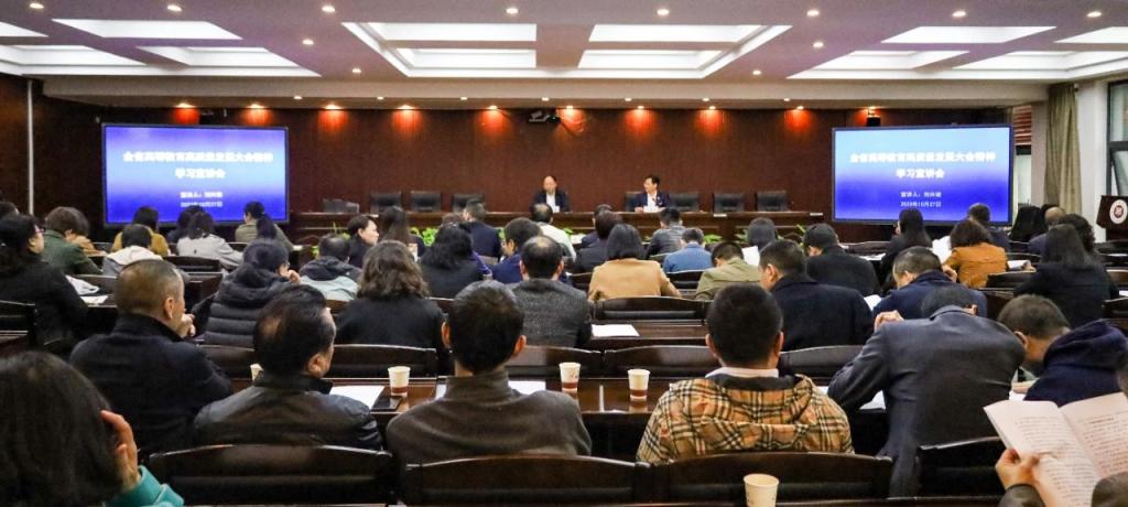 刘兴德从统一思想、提高站位,充分认识全省高等教育高质量发展大会的重大意义;认真学习、准确把握,深刻领会全省高等教育高质量发展大会的精神实质;学用结合、学以致用,对标对表抓好《关于加快推动全省高等教育高质量发展的意见》贯彻落实等方面,对全省高等教育高质量发展大会精神进行全面深入、重点突出的宣讲解读,并与大家交流学习体会。