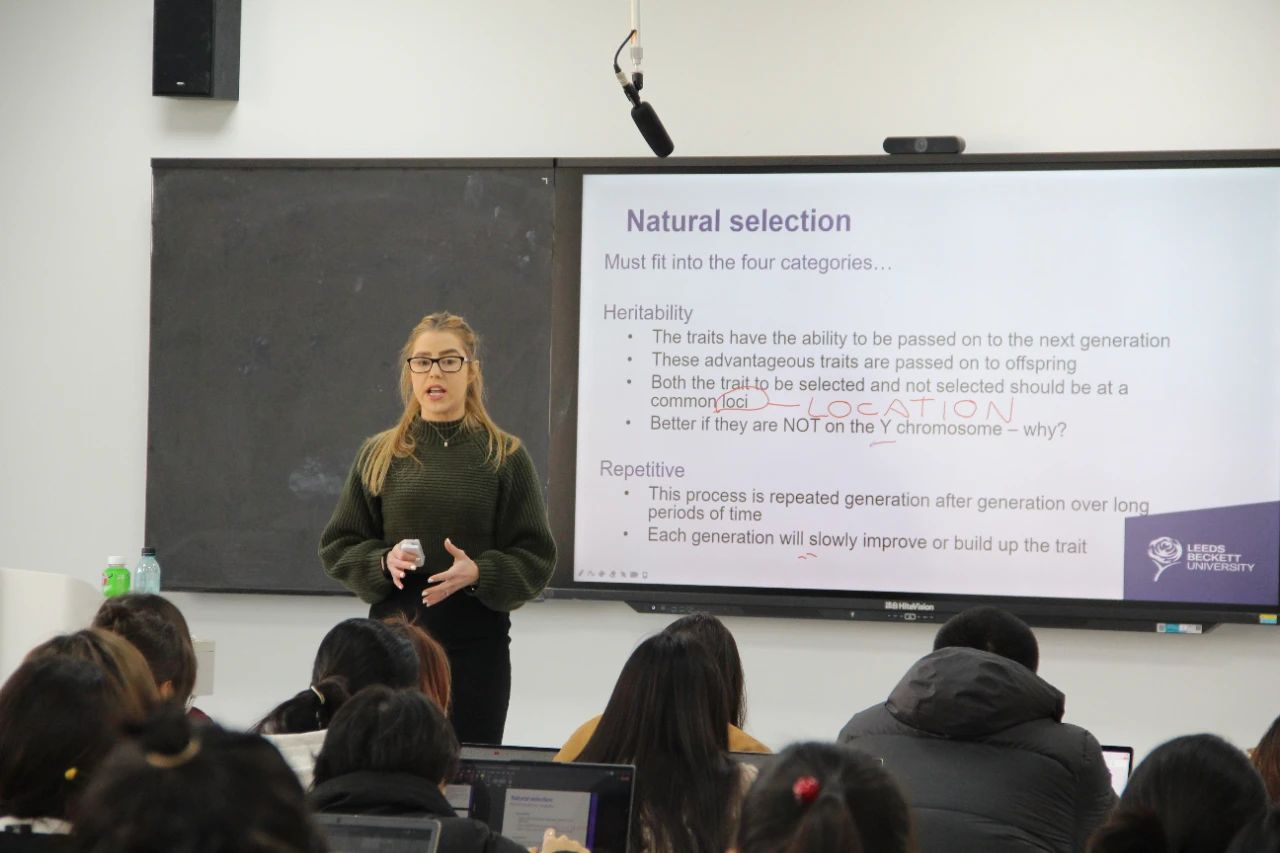 霍克尼是英国利兹贝克特大学生物医学科学学院高级讲师,其研究领域包括探究感染和炎症在生殖健康、怀孕和生育中的影响。课堂上,她结合自身研究经验和专业知识,利用互联网技术,辅以生动的案例和实操演示,使同学们更好地理解了基因学的重要性和应用价值,并通过分组讨论与小组问答,引导思考,鼓励提问,充分调动学生参与教学的积极性。