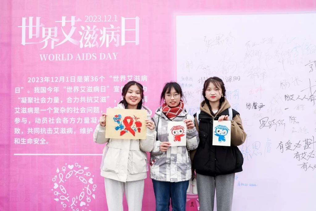 当天,我校防艾协会和公益类社团在校园内开展了丰富多彩的志愿者公益宣传活动,通过防艾宣传视频展播、“防艾”知识宣传栏、“防艾”合影墙打卡点、“防艾”知识竞赛、“防艾”漫画展等形式,向青年学生宣传艾滋病防治知识。线上,全省11987名青少年通过图片直播的形式观看活动。