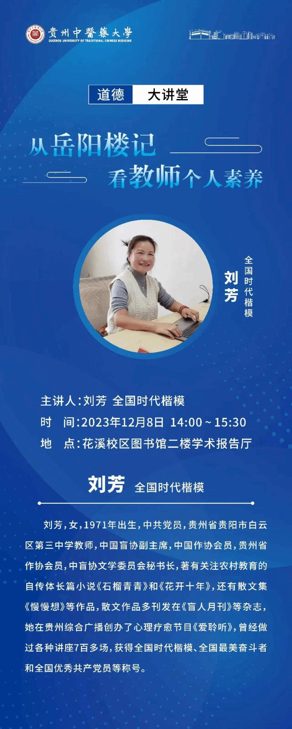 学校新闻 最新动态> 通知公告> 专项工作> 媒体关注> 学校新闻 最新动态 通知公告 专项工作 媒体关注 上一篇:马克思主义学院“理论宣传二人讲”走进南明区 下一篇:外语教学部2023年度系列讲座收官 “道德大讲堂”预告|明天,“时代楷模”刘芳老师来校作讲座 2023.12.07 22:58:48 基础医学院