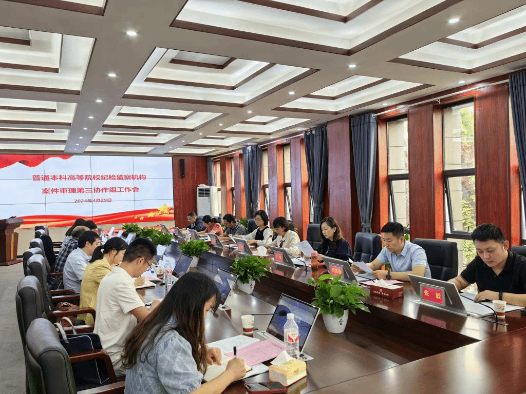 2024年4月29日,普通本科高等院校纪检监察机构案件审理第三协作组工作会在我校花溪校区召开。遵义医科大学、贵州师范学院、贵州开放大学、贵州商学院、贵州工程应用技术学院和我校纪委负责案件审理工作的主要同志参加此次会议,省纪委省监委派驻省教育厅纪检监察组案件审理室主任刘刚莉出席。