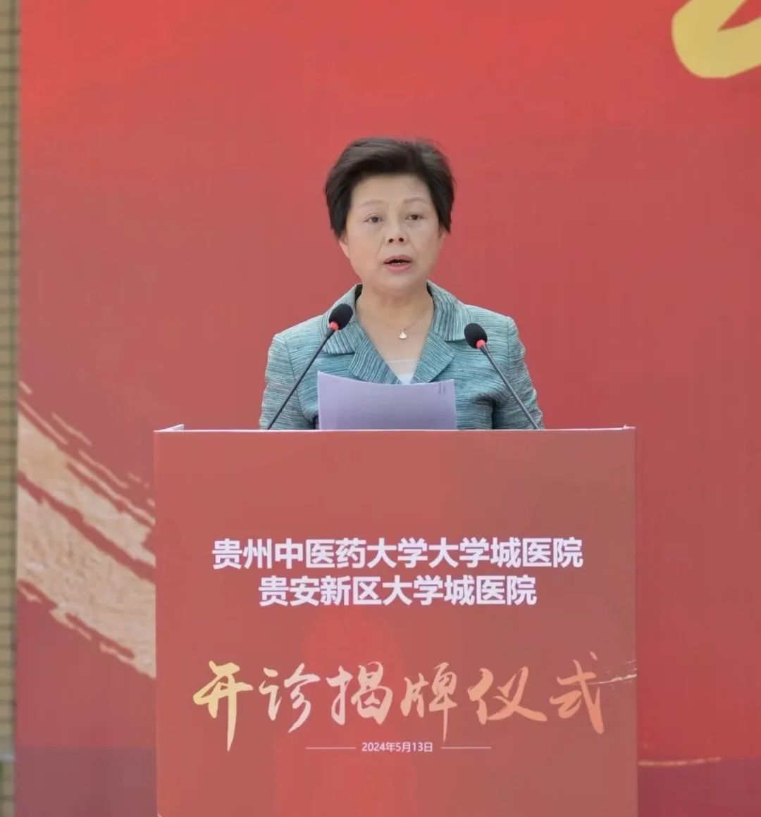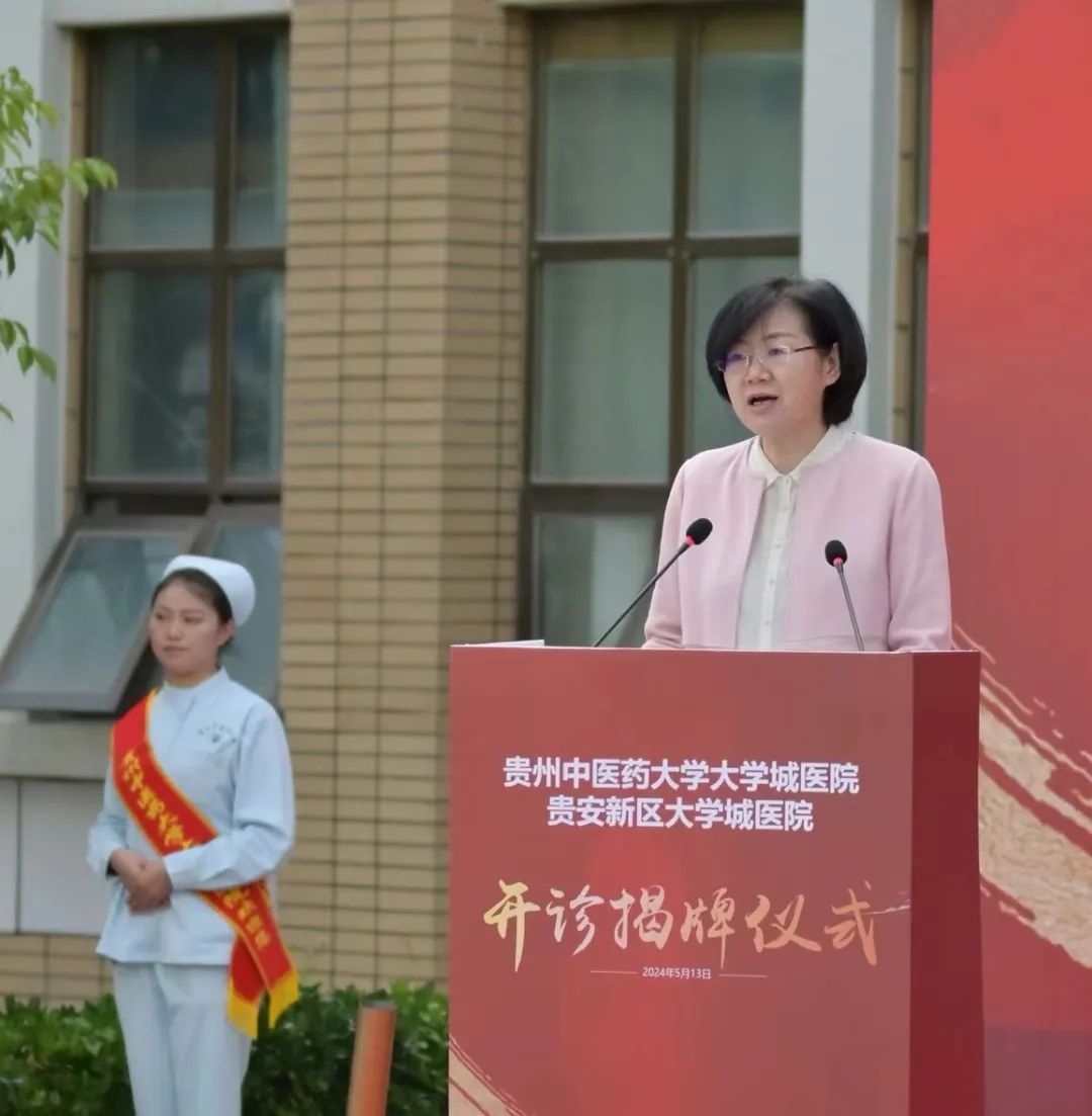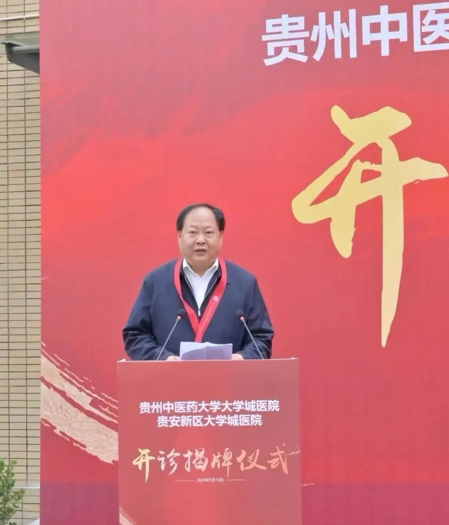 省政协副主席、民盟贵州省主委冉霞出席开诊揭牌仪式并讲话。省人民政府原副省长、省人大常委会原副主任何力出席。校党委副书记、校长刘兴德致辞。省卫生健康委副主任,省中医药管理局党组书记、局长安仕海,贵安新区党工委委员、管委会副主任吴宏春,校领导于浩、田维毅、周英出席。