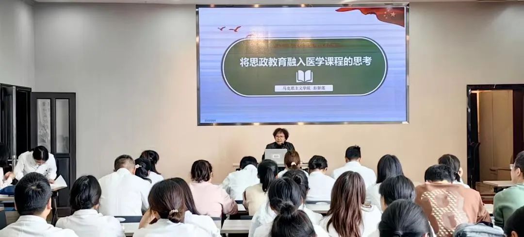 结合学校实际,马克思主义学院深入挖掘中医文化蕴含的丰富思想政治教育资源,自觉承担起传播和弘扬中医药文化的使命,将中医药文化元素融入日常教学教案、讲稿讲课中;运用中医文化核心价值理念开展思想政治教育,做到结合课程属性、结合专业特征、结合学生画像,讲清“坚持把马克思主义基本原理同中国具体实际相结合、同中华优秀传统文化相结合”的道理,将思想政治教育元素贯穿于教育教学全过程,不断增强学生认同感。构建以思想政治理论课建设为引领,以中医药文化为依托、以学生学习成效为重点的思政育人体系,全力推动学校思政课程与课程思政同向同行,协同育人。